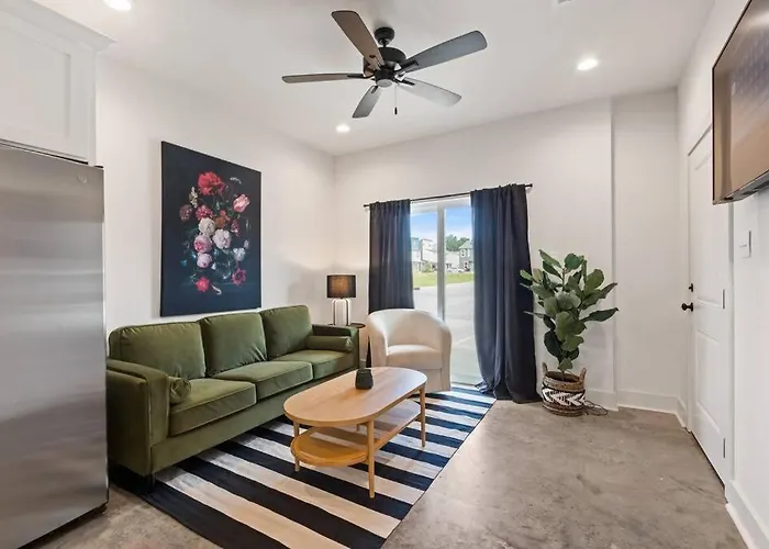 Teche House KING Bed Luxury Getaway Fast WiFi Appartement Lafayette ligt op ongeveer 7 km van American Footballstadion Cajun Field en omvat parkeerplaatsen voor degenen die met de auto reizen. Binnen 7 km van dit 1-badkamer appartement vindt u het Conventiecentrum Cajundome.